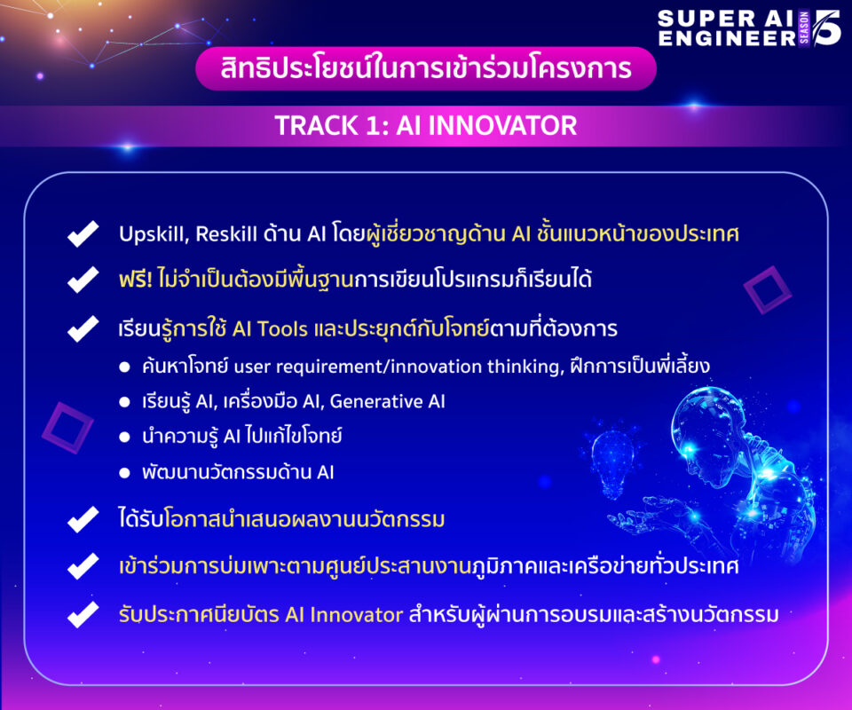 คุณสมบัติของผู้เข้าร่วม Track 1: AI Innovator